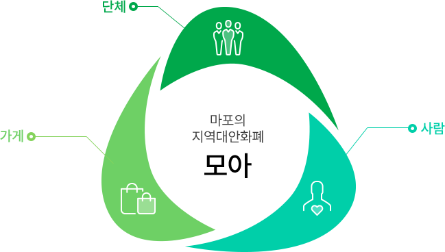 <마포공동체경제네트워크 모아>에서 발행한 마포의 지역대안화폐이며, <마포공동체경제네트워크 모아>와